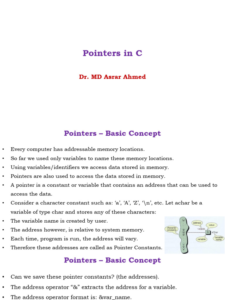• Let 𝒊𝒏𝒕 𝒂 = 𝟏𝟎; and 𝒊𝒏𝒕 ∗ 𝒑𝒕𝒓 = &𝒂; be two statements.