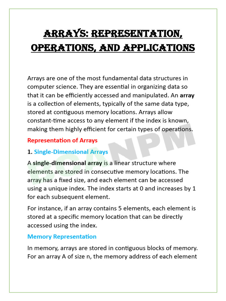 stored at contiguous memory locations. Arrays allow