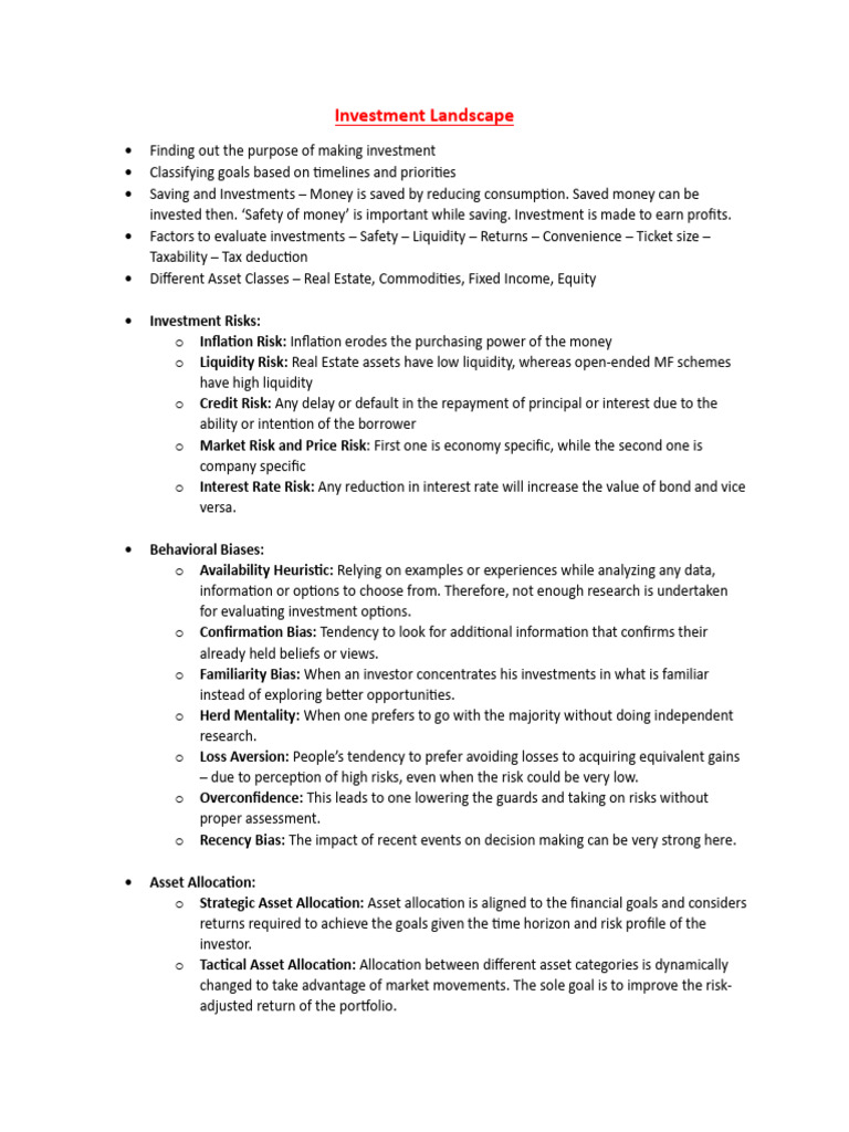 o Inflation Risk: Inflation erodes the purchasing power of the money