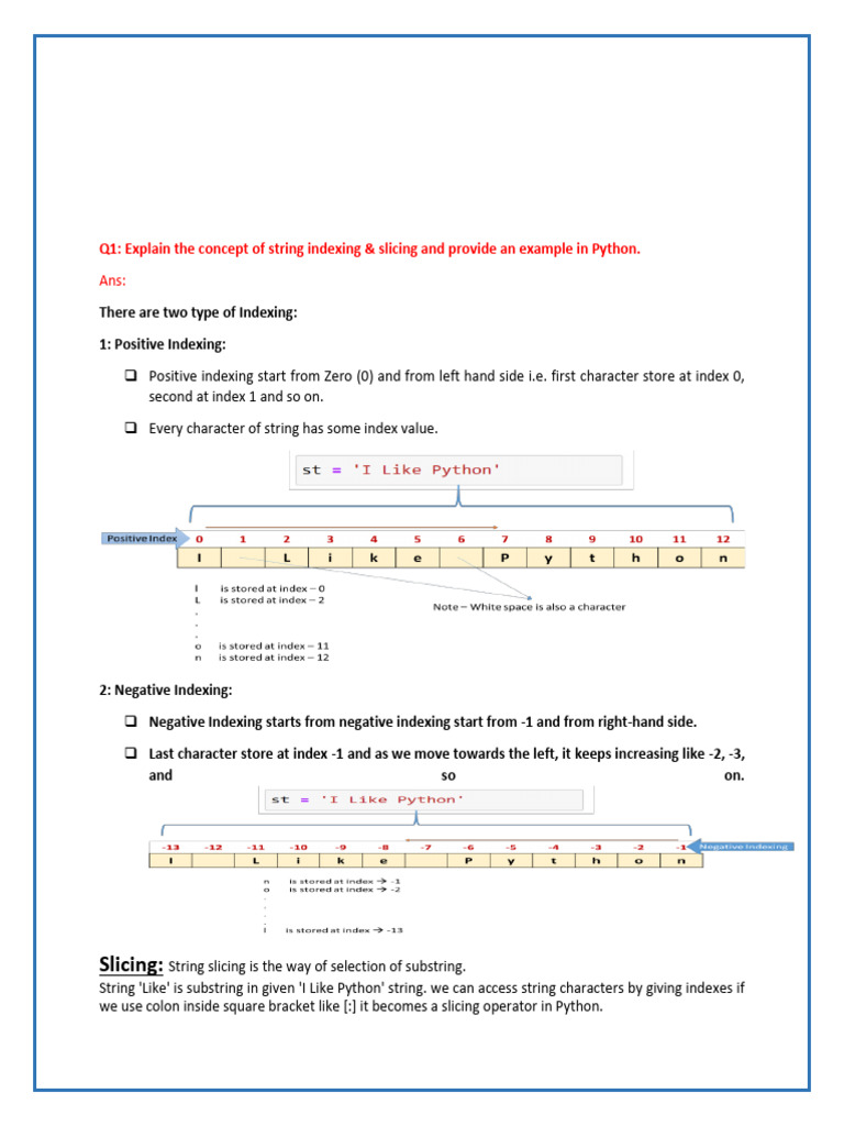 ❑ Last character store at index -1 and as we move towards the left, it keeps increasing like -2, -3,