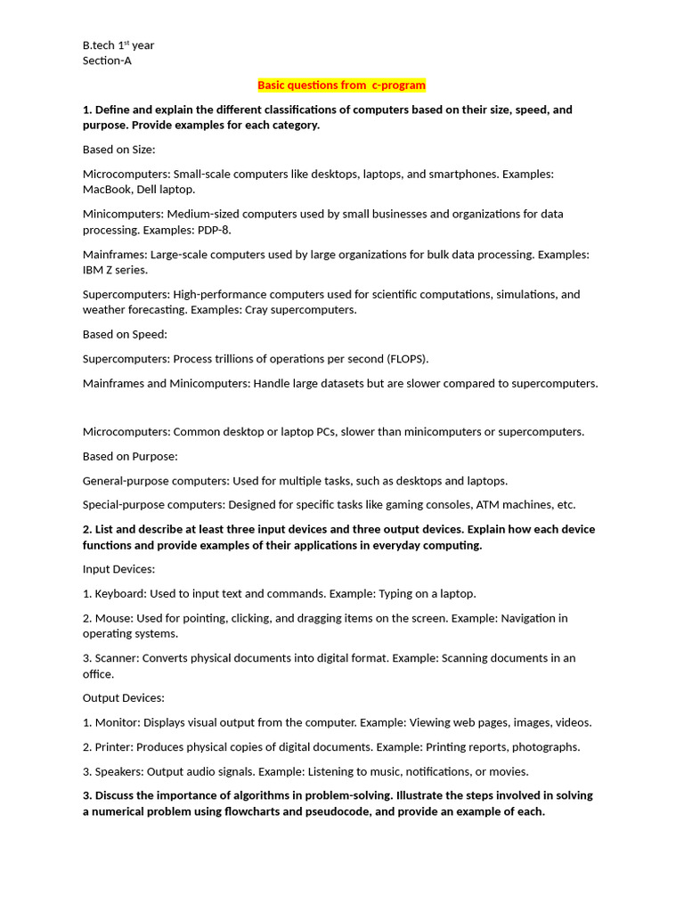 1. Define and explain the different classifications of computers based on their size, speed, and