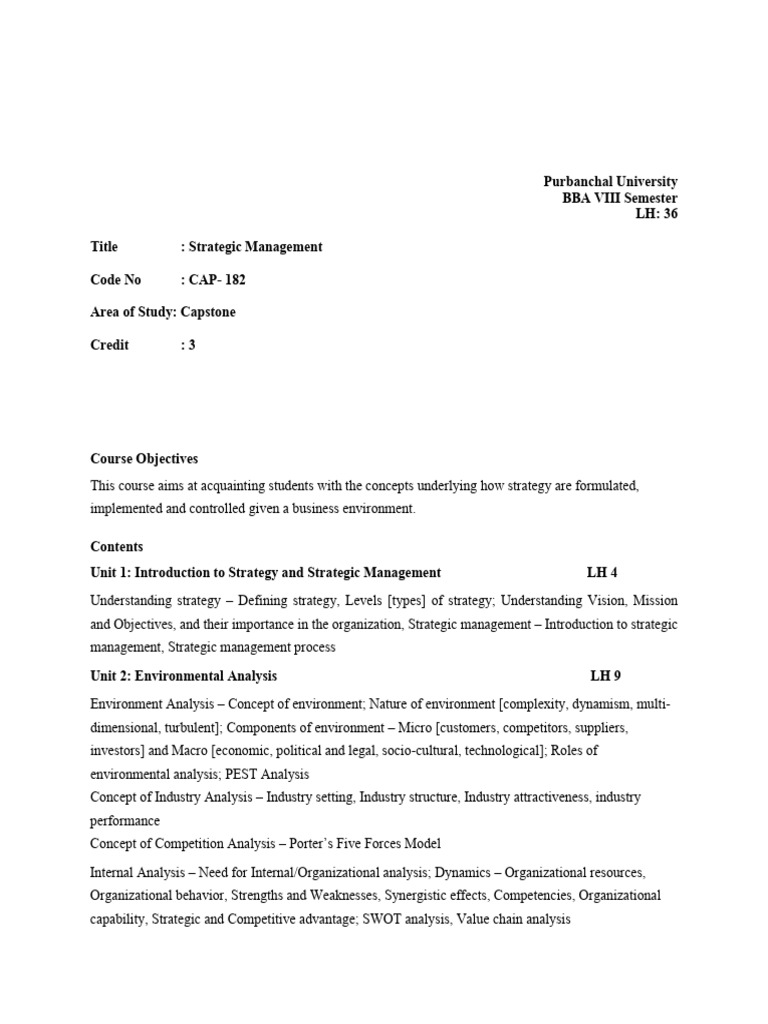 Unit 1: Introduction to Strategy and Strategic Management LH 4