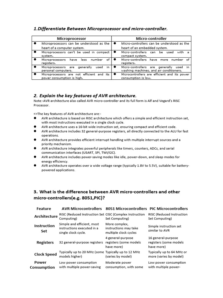 Feature AVR Microcontrollers 8051 Microcontrollers PIC Microcontrollers