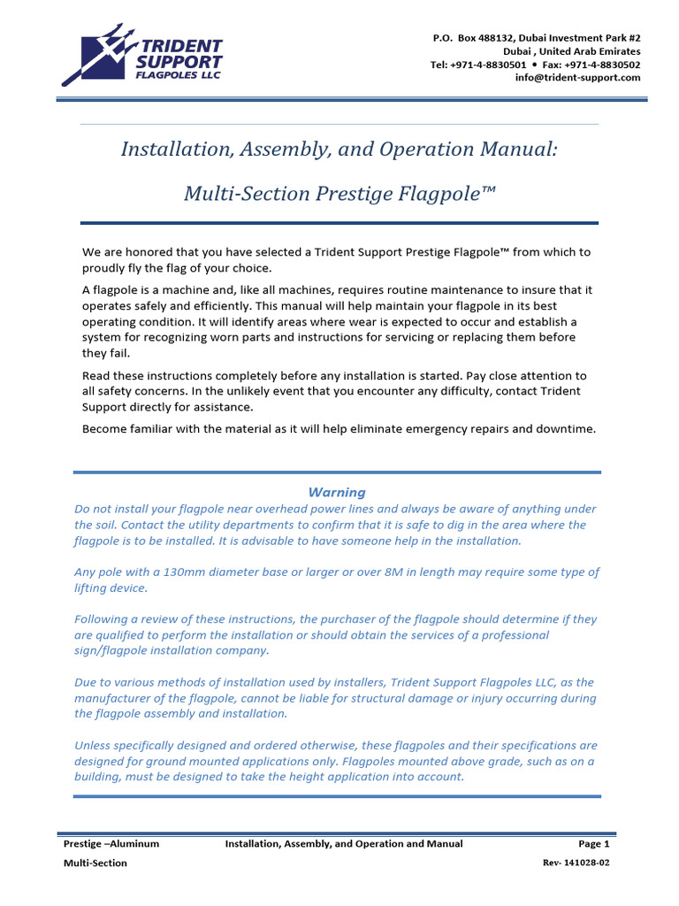 We again want to thank you for choosing a Trident Support Prestige Flagpole™ and hope