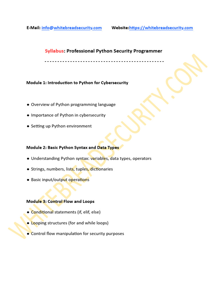 Syllabus: Professional Python Security Programmer