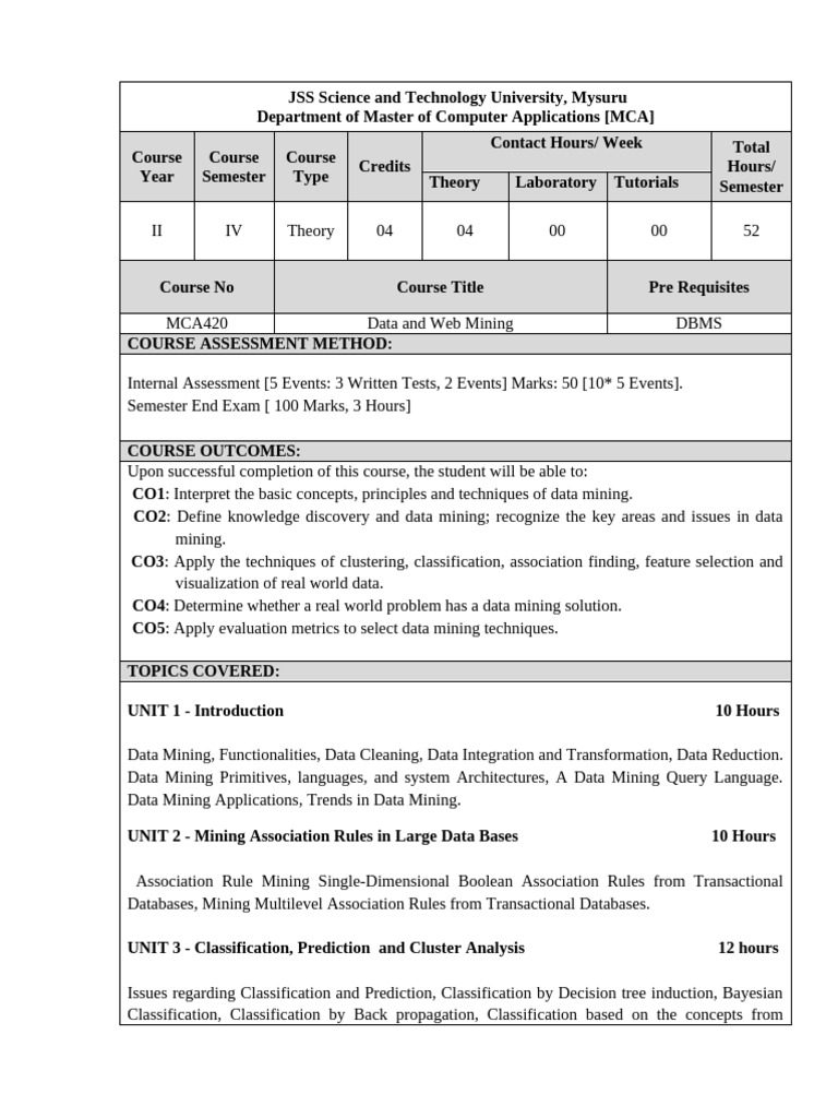 CO1: Interpret the basic concepts, principles and techniques of data mining.
