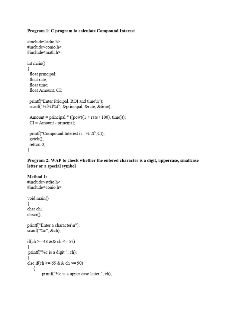 Program 2: WAP to check whether the entered character is a digit, uppercase, smallcase