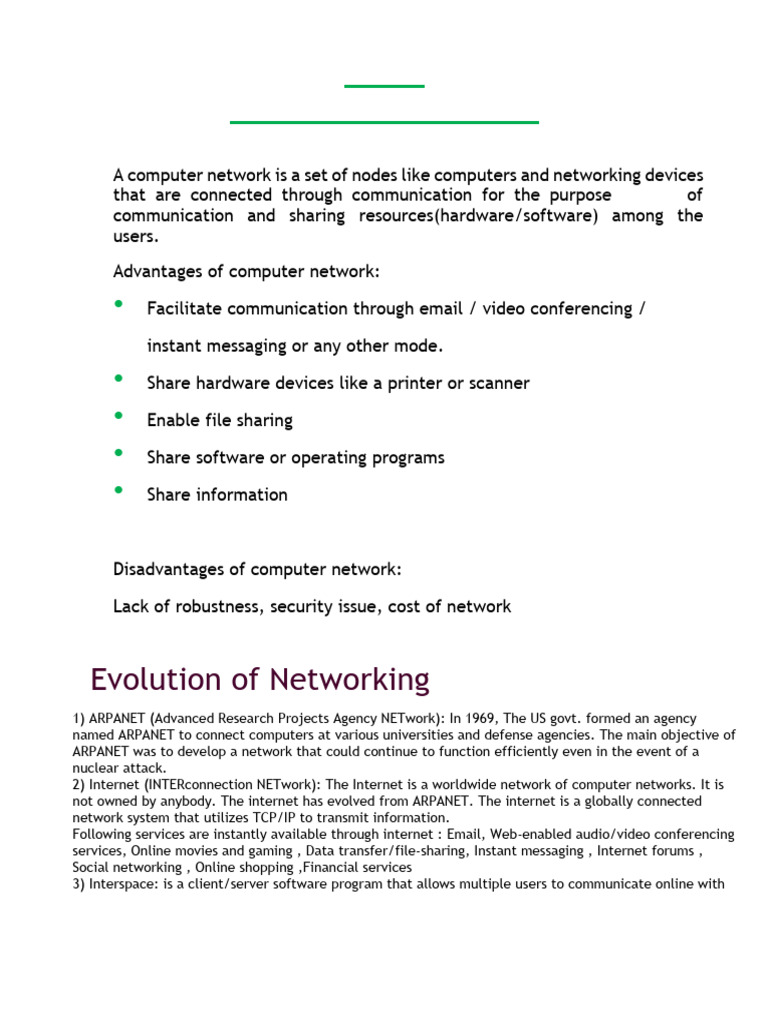 1) ARPANET (Advanced Research Projects Agency NETwork): In 1969, The US govt. formed an agency