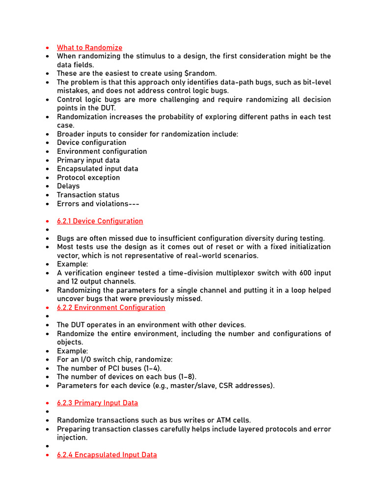 • Control logic bugs are more challenging and require randomizing all decision