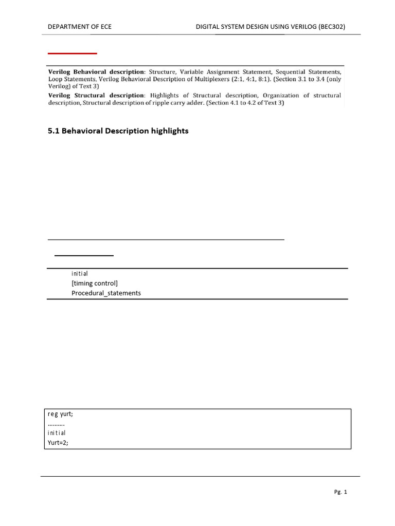 DEPARTMENT OF ECE DIGITAL SYSTEM DESIGN USING VERILOG (BEC302)