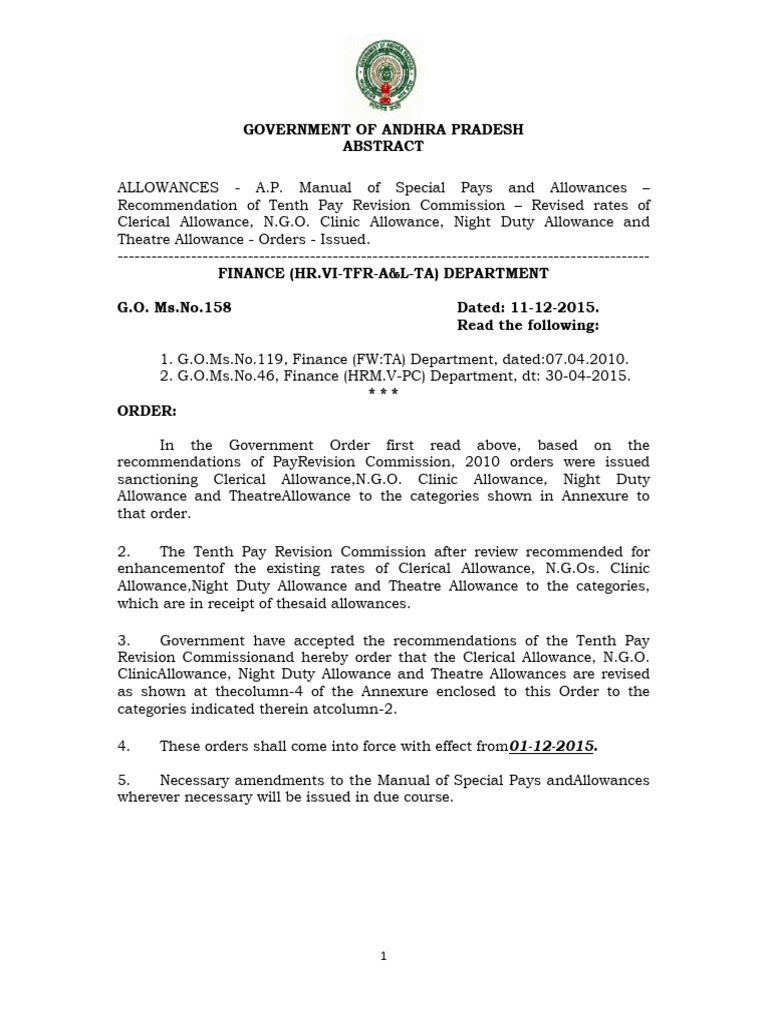 1. G.O.Ms.No.119, Finance (FW:TA) Department, dated:07.04.2010.