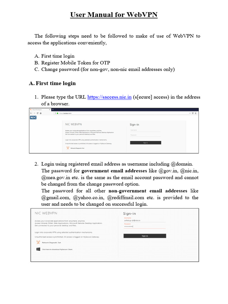 1. Please type the URL https://saccess.nic.in (s[ecure] access) in the address