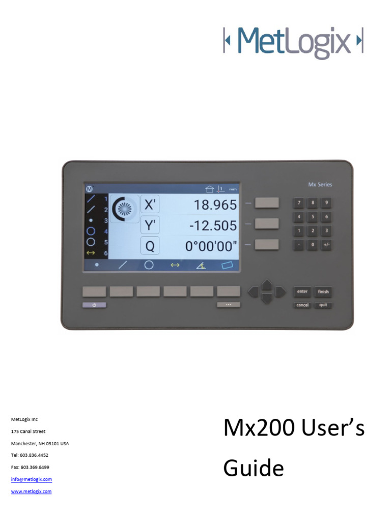 The Mx200 user guide describes the operation of the Mx200 readout. The Mx200 supports manual part positioning and