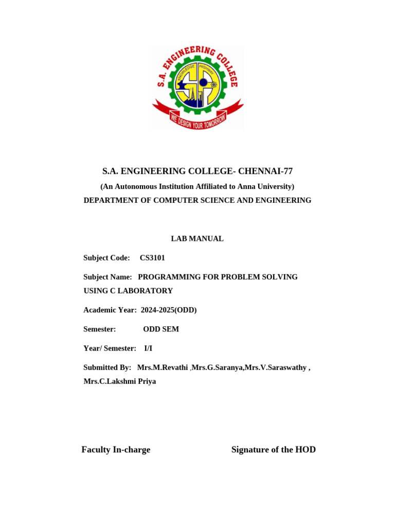 S.A. ENGINEERING COLLEGE- CHENNAI-77