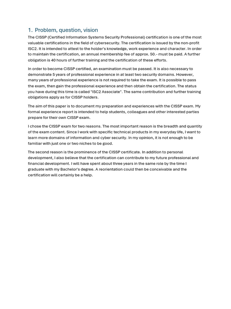 The aim of this paper is to document my preparation and experiences with the CISSP exam. My