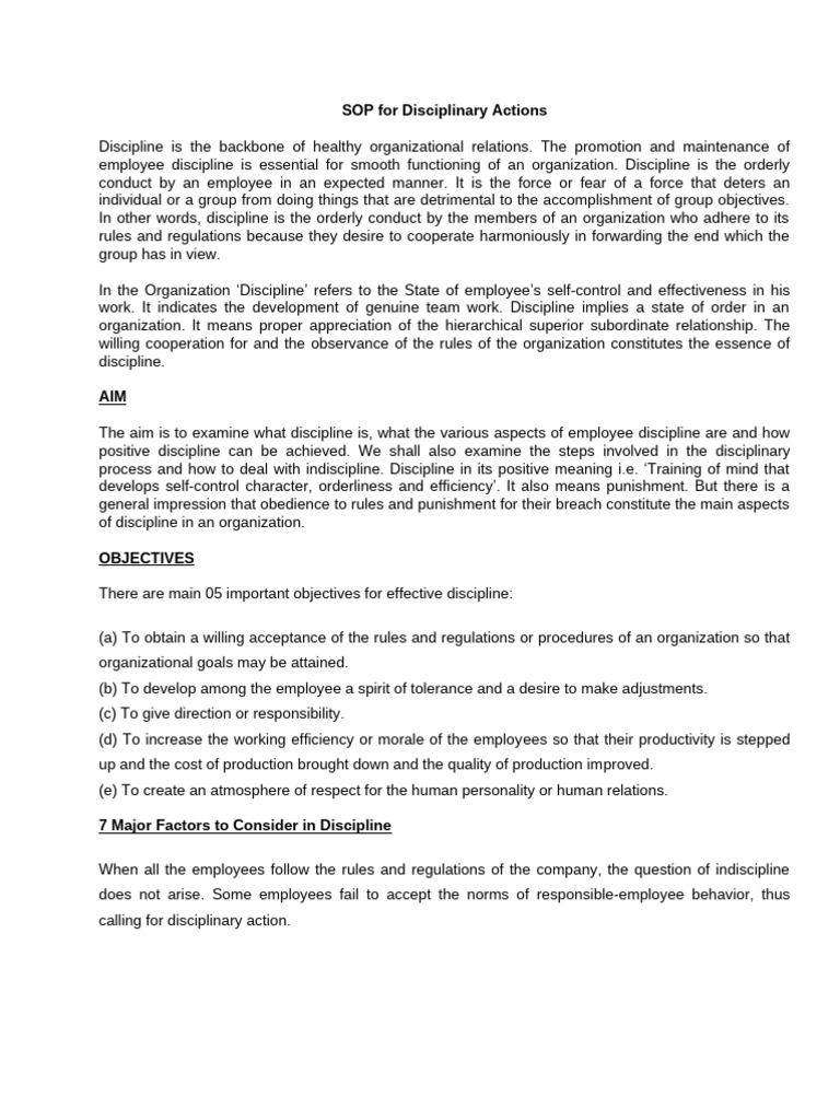 employee discipline is essential for smooth functioning of an organization. Discipline is the orderly