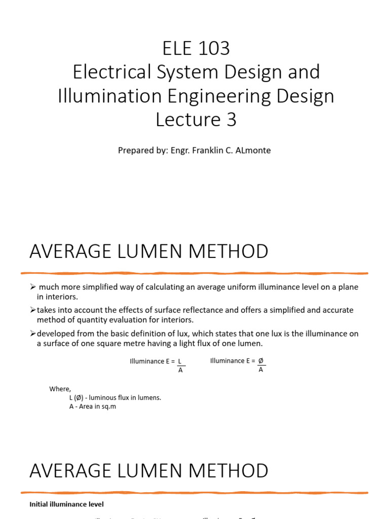 Illuminance E = N x Ln x CU x LLF Illuminance E = N x Ø x η x ρ