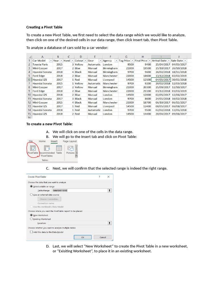 D. Last, we will select “New Worksheet” to create the Pivot Table in a new worksheet,