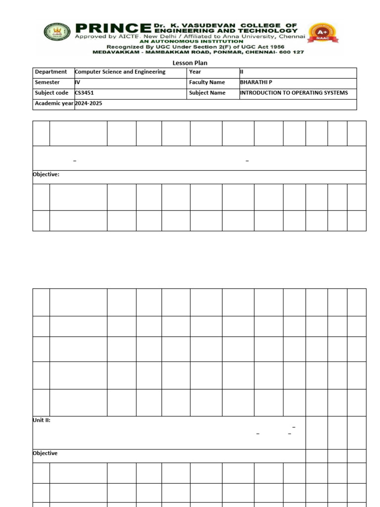 Subject code CS3451 Subject Name INTRODUCTION TO OPERATING SYSTEMS