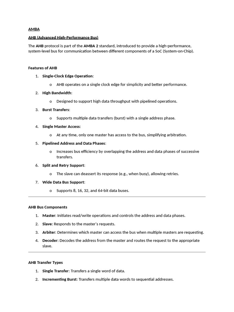 The AHB protocol is part of the AMBA 2 standard, introduced to provide a high-performance,
