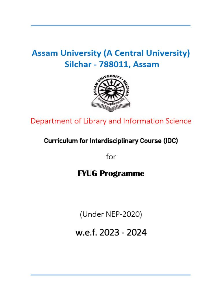 Semester Wise List of IDC (Interdisciplinary Course) Papers in Library and Information Science........... 2