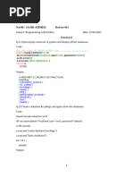 cursor=mycon.cursor() ano=int(input(“Enter admission no: “)) n=input(“Enter name: “)