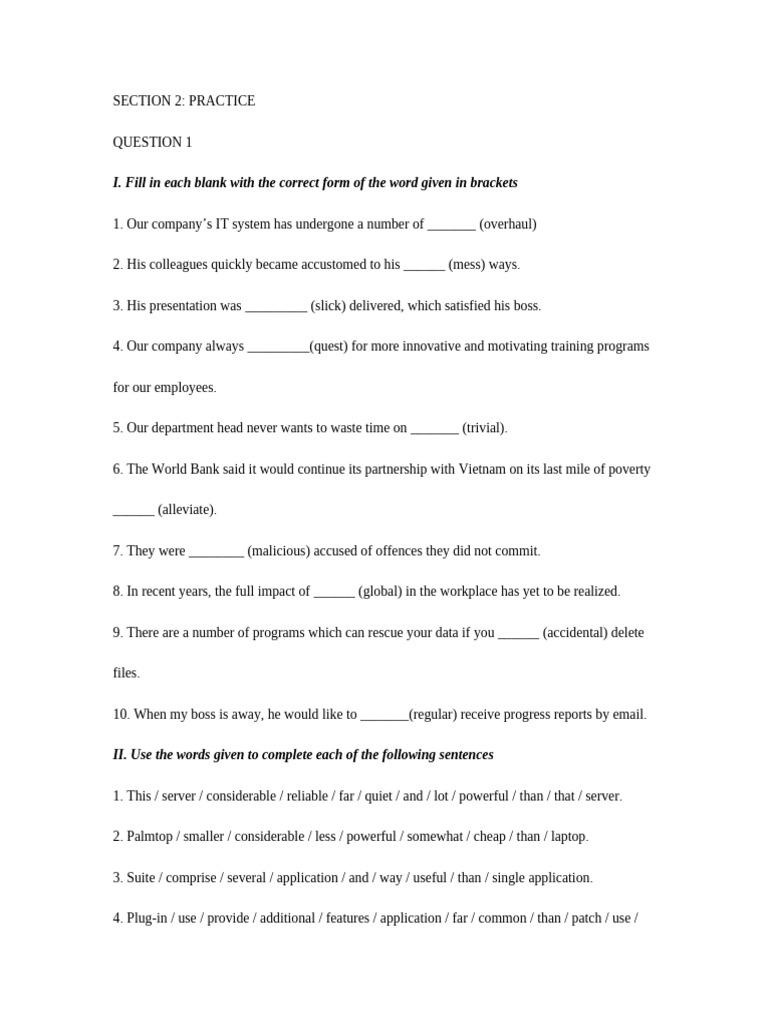 8. In recent years, the full impact of ______ (global) in the workplace has yet to be realized.