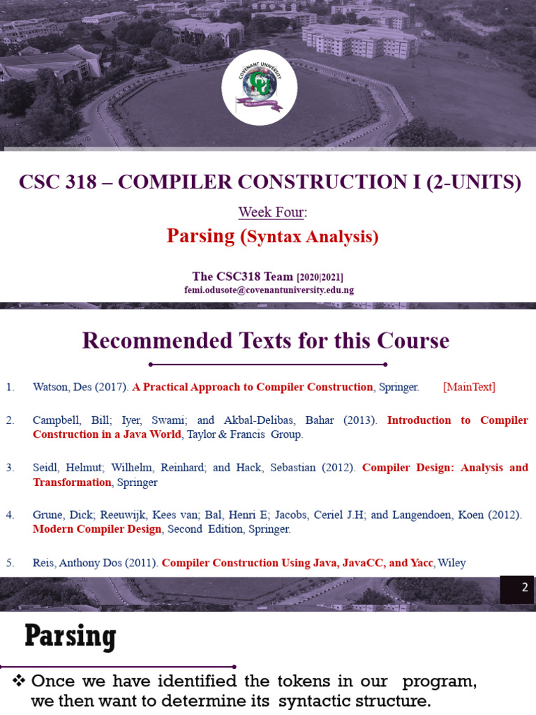 CSC 318 – COMPILER CONSTRUCTION I (2-UNITS)