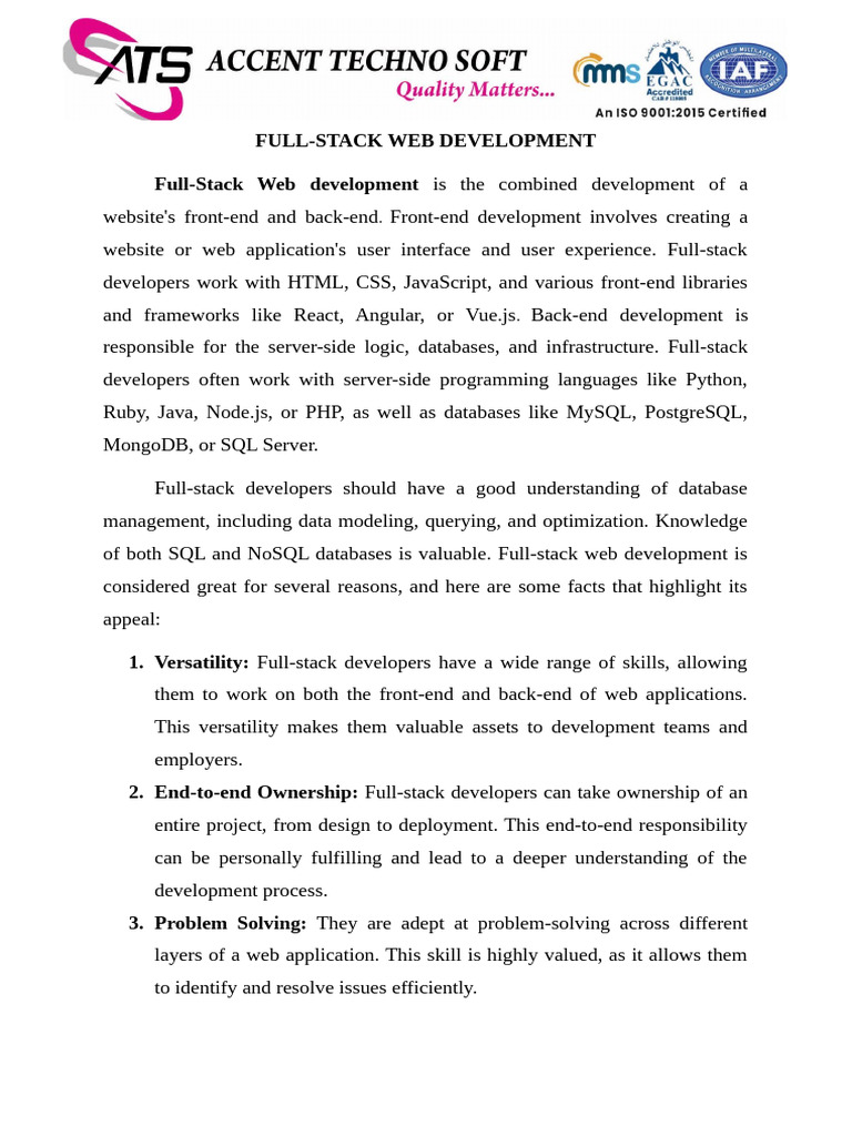 of both SQL and NoSQL databases is valuable. Full-stack web development is