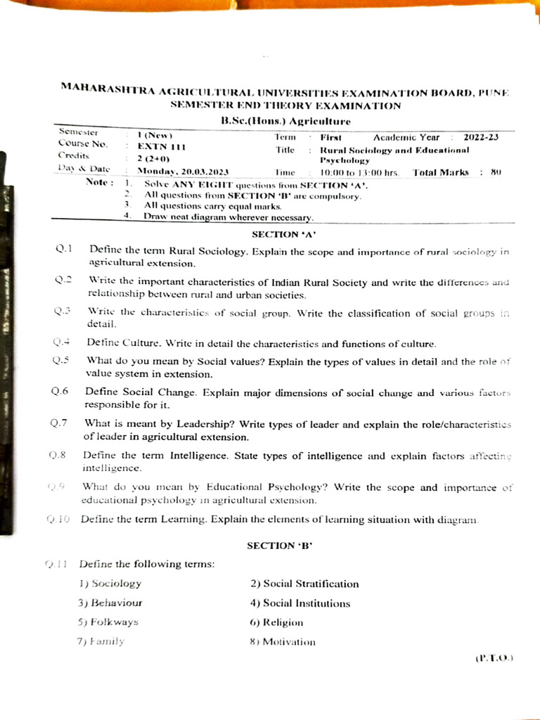 Q.2 Explain scope and importance of Rural Sociology in agricultural extension.