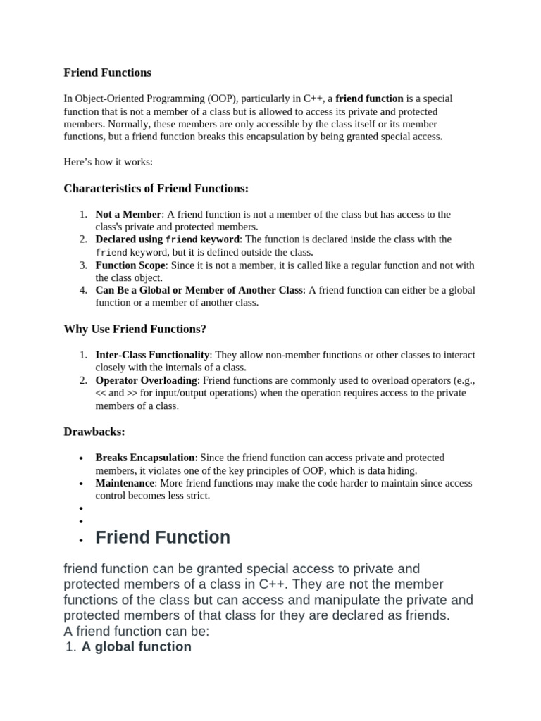 functions, but a friend function breaks this encapsulation by being granted special access.