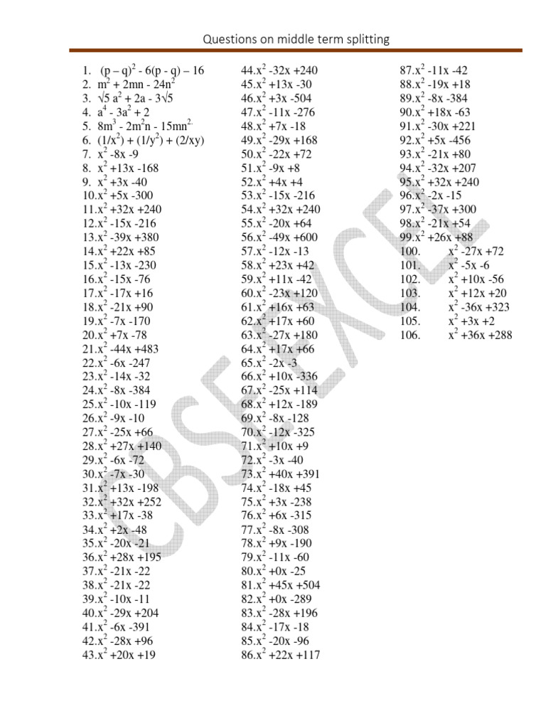 Factorisation Middle Term | PDF