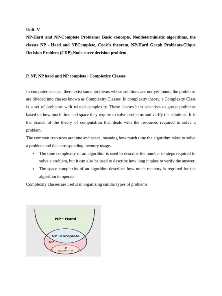 classes NP - Hard and NPComplete, Cook’s theorem, NP-Hard Graph Problems-Clique