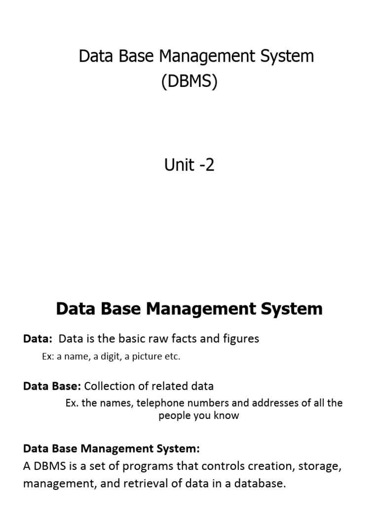 Ex: MS-Access, Oracle, MY SQL, Sybase, IBM DB2, Ingres etc
