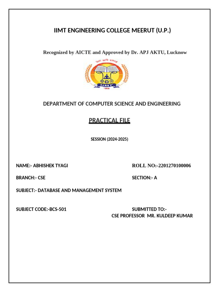DBMS FILE (1) (2) Abhishek Tyagi Dbms