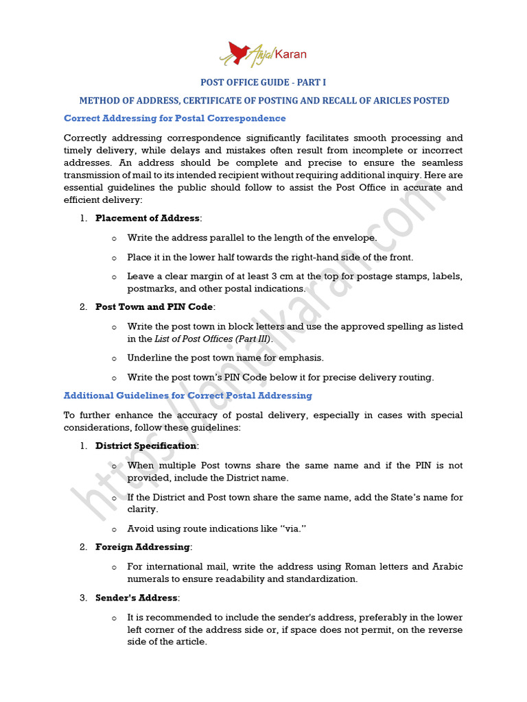 POST OFFICE GUIDE - PART I