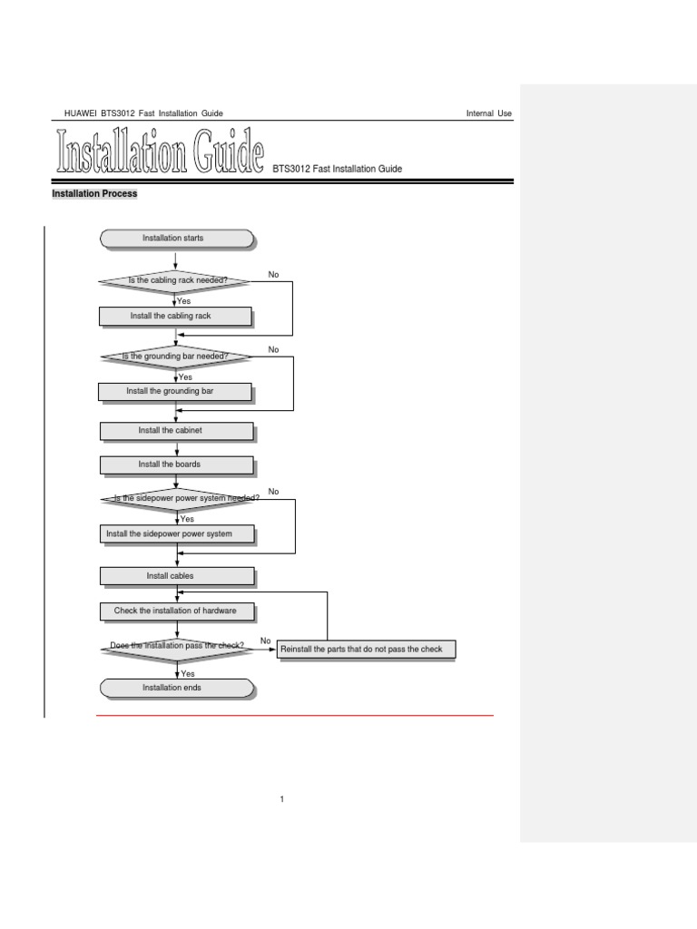 Refer to the HUAWEI BTS3012 Base Station Installation Manual-Cabinet Installation.