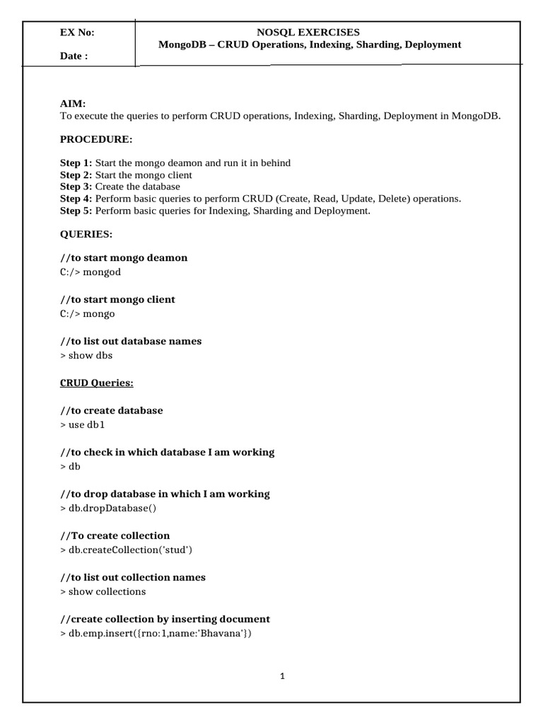 To execute the queries to perform CRUD operations, Indexing, Sharding, Deployment in MongoDB.