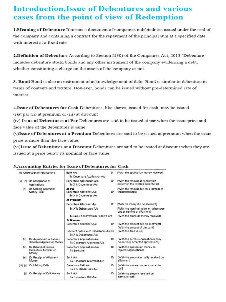 4.Issue of Debentures for Cash Debentures, like shares, issued for cash, may be issued