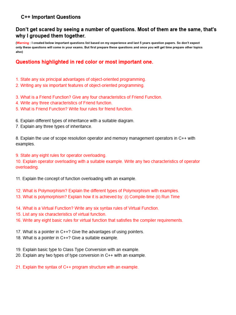 only these questions will come in your exams. But first prepare these questions and once you will get time prepare other topics
