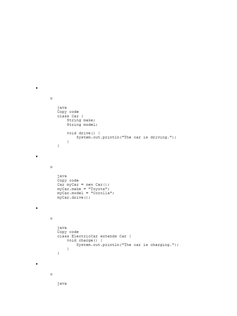 • Class: A blueprint for creating objects. It defines properties (fields) and methods