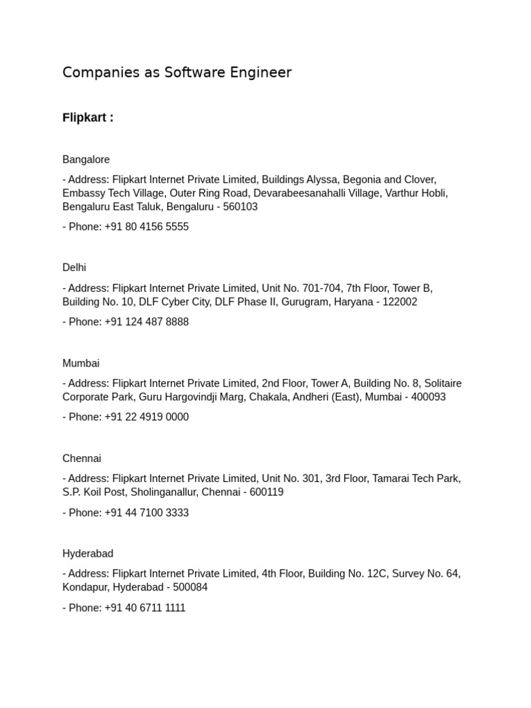 - Address: Flipkart Internet Private Limited, 2nd Floor, Tower A, Building No. 8, Solitaire