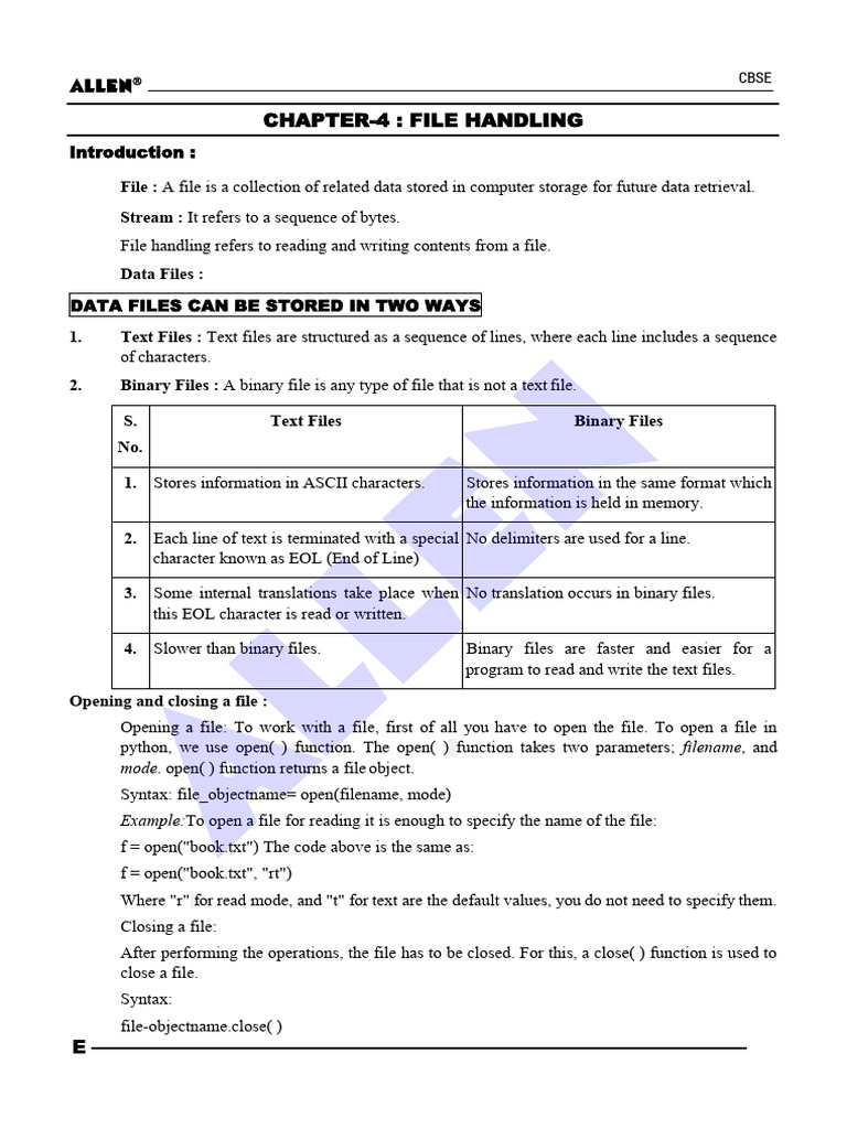 1. Text Files : Text files are structured as a sequence of lines, where each line includes a sequence