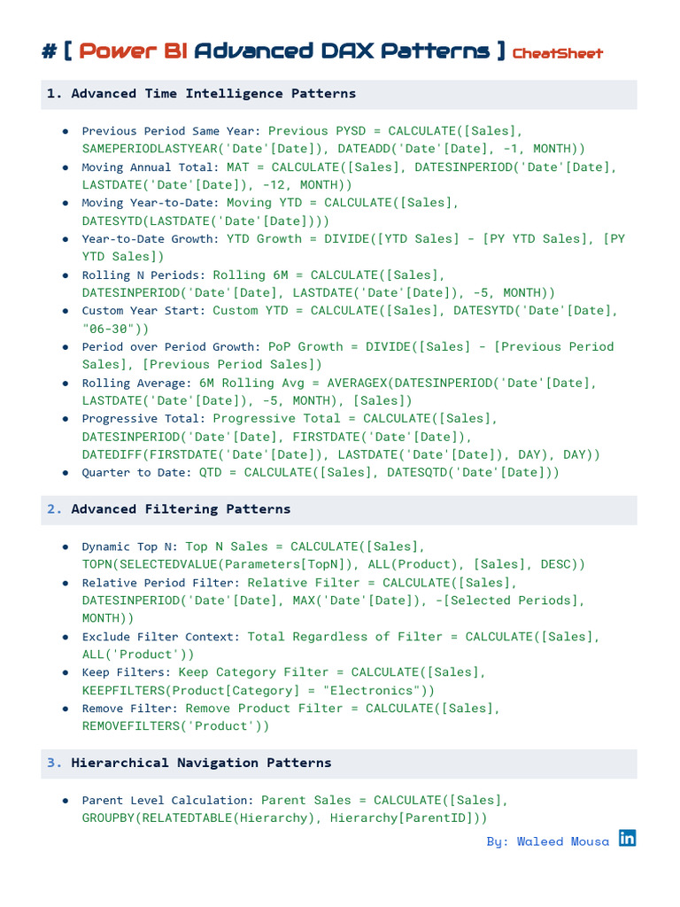 # [ Power BI Advanced DAX Patterns ] CheatSheet