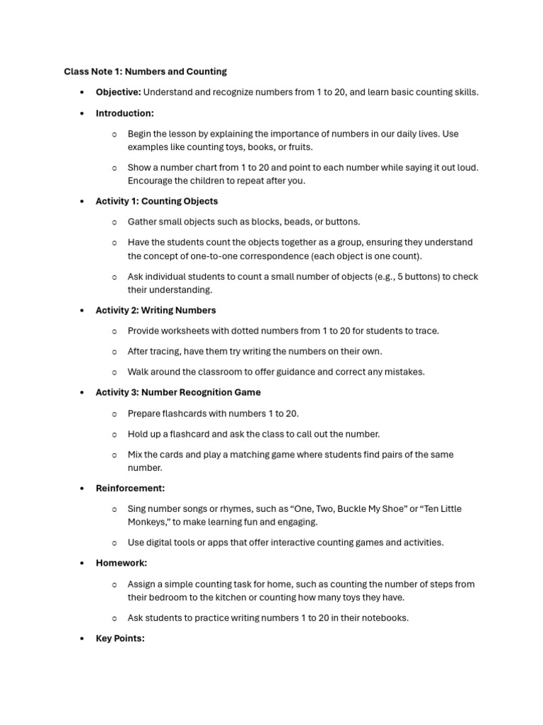 o Ask students to practice writing numbers 1 to 20 in their notebooks.
