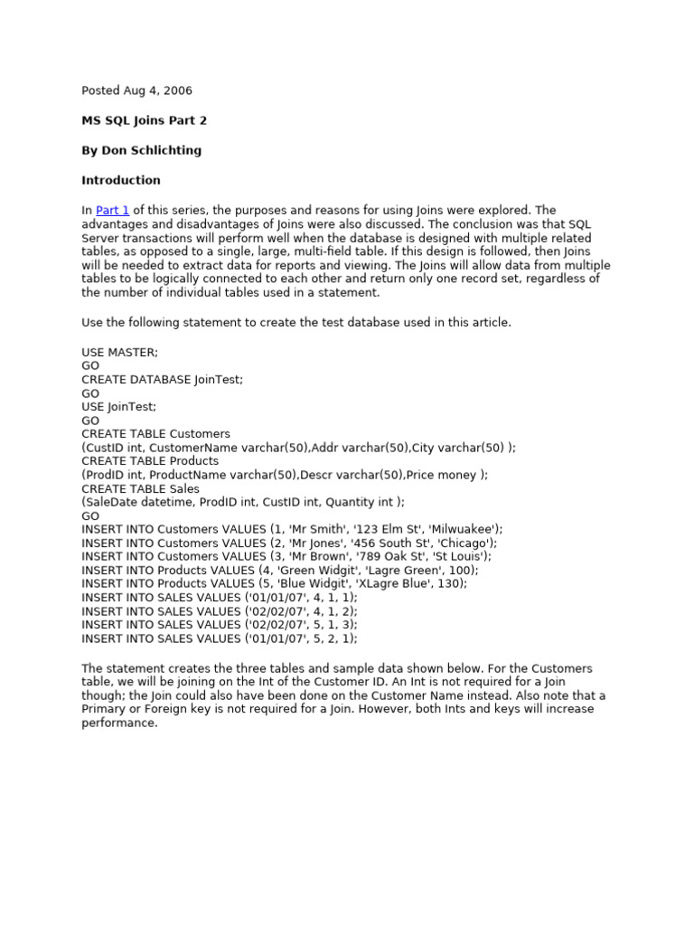 other. In the next article, we will work with Join Hints, Cross Joins, and using Joins in Update