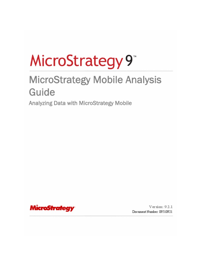 MicroStrategy Mobile Analysis Guide: Analyzing Data with MicroStrategy Mobile Information and instructions for using MicroStrategy Mobile to view and analyze data, and perform other business tasks with MicroStrategy reports and documents on a mobile device.