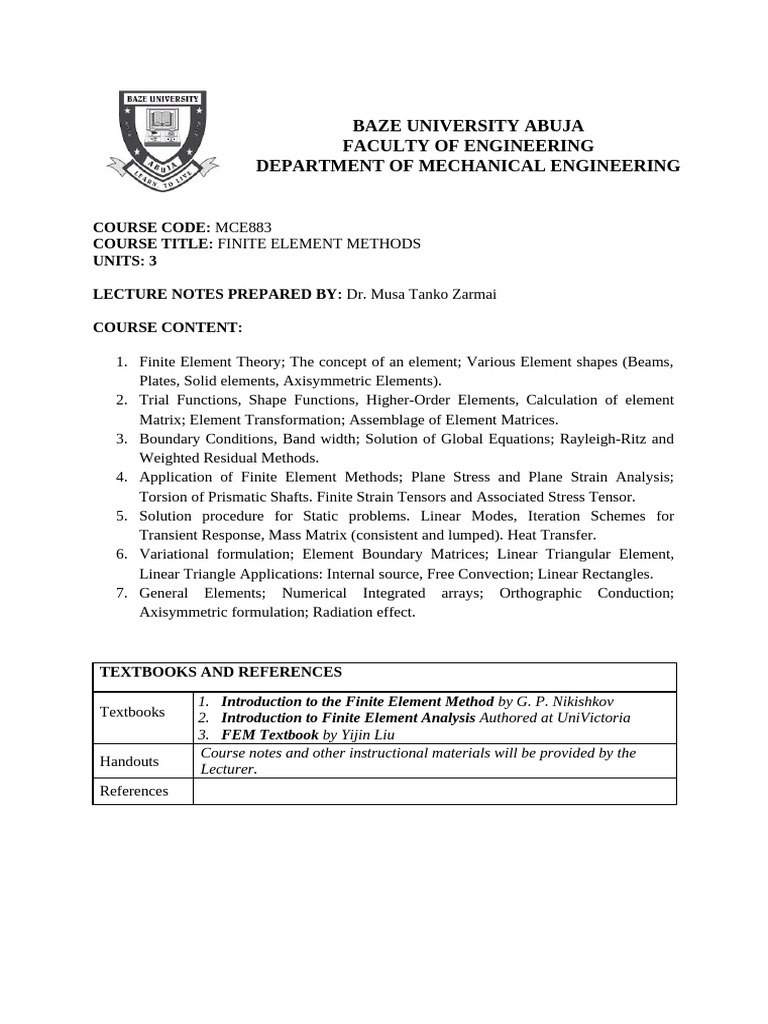 Textbooks 2. Introduction to Finite Element Analysis Authored at UniVictoria