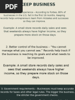 business, a record should be kept to identify the