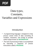 constant declarations; basic data types, statements (assignment, I/O, control), structured data